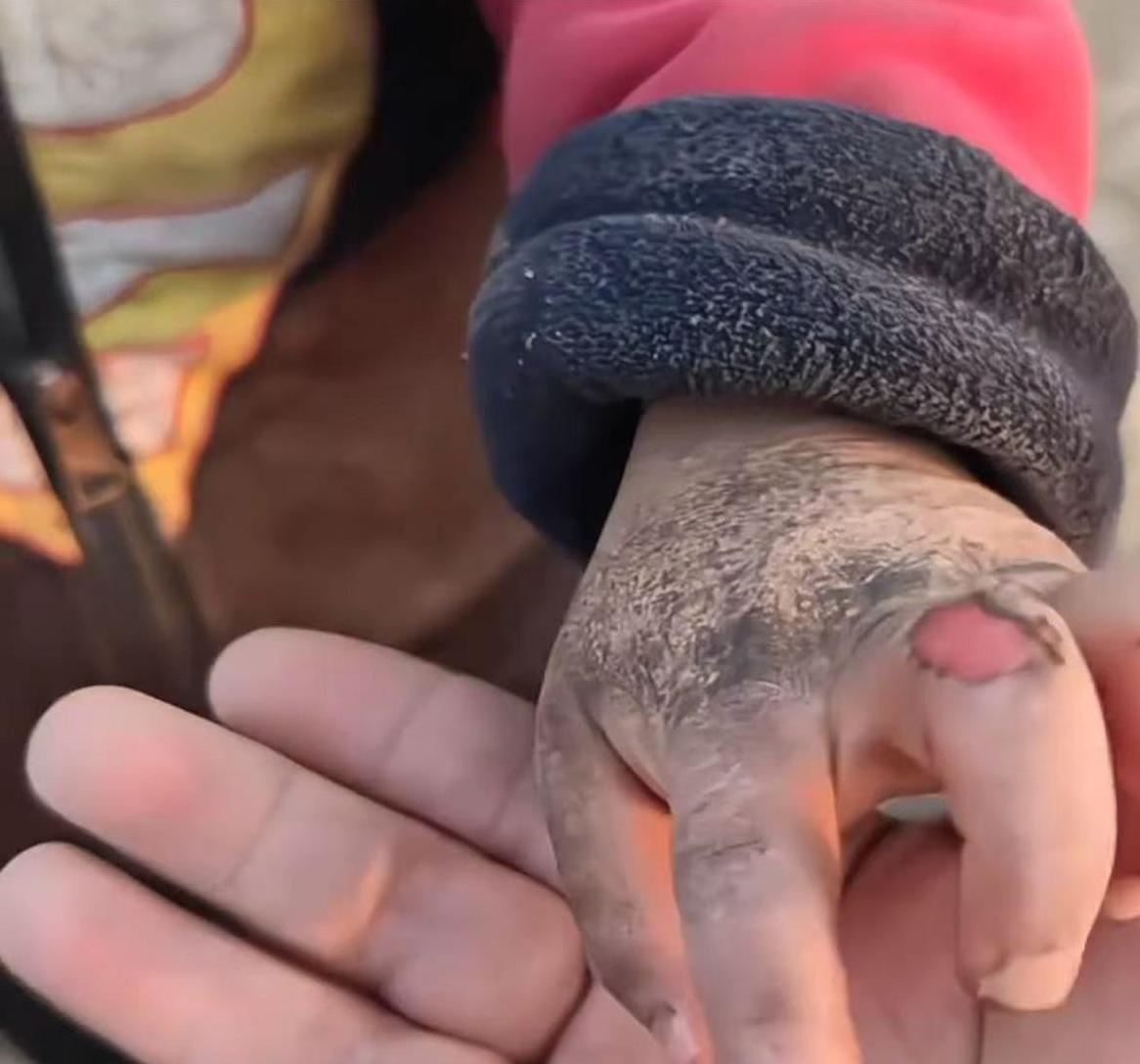照片里的小男孩双手布满裂口,指甲缝里嵌着难以洗掉的泥,看着让人心疼。