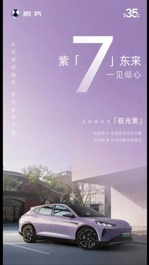 在竞争日益激烈的新能源汽车市场中,2025 款腾势 N7 凭借其时尚的外观、宽敞的空间以及不错的动力性能,有望吸引更多消费者的关注。新增的极光紫限定色,更是满足了消费者对于个性化的追求。相信在正式上市后,2025 款腾势 N7 将在新能源中型 SUV 市场中取得不错的成绩。
