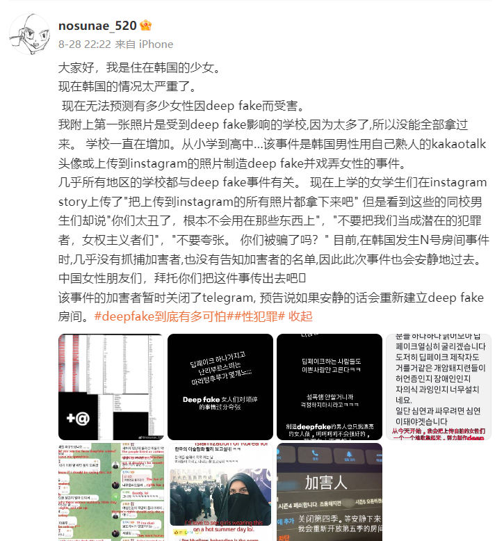 将脸和淫秽物合成到一起的Deep Fake犯罪正让韩国女性人人自危。