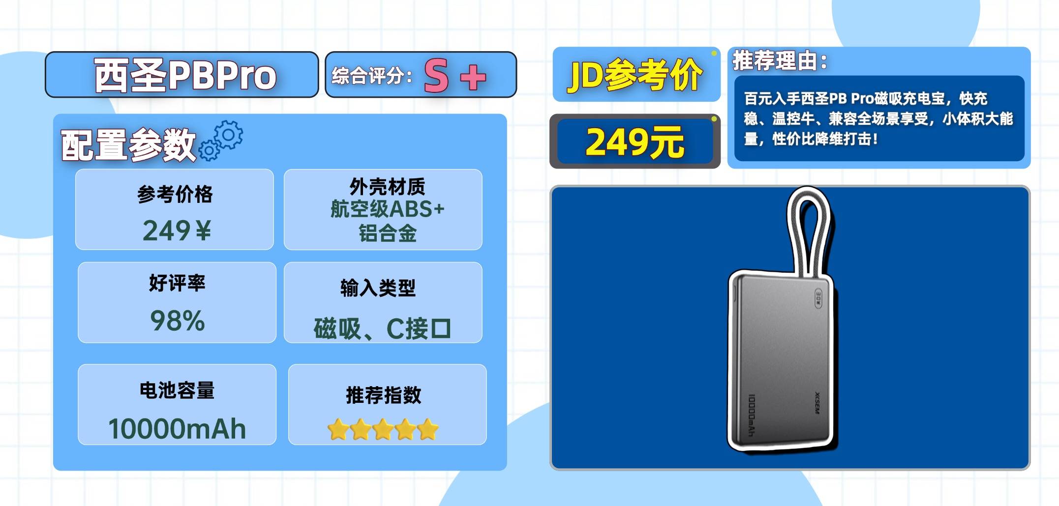 3、西圣PB Pro磁吸自带数据线快充充电宝