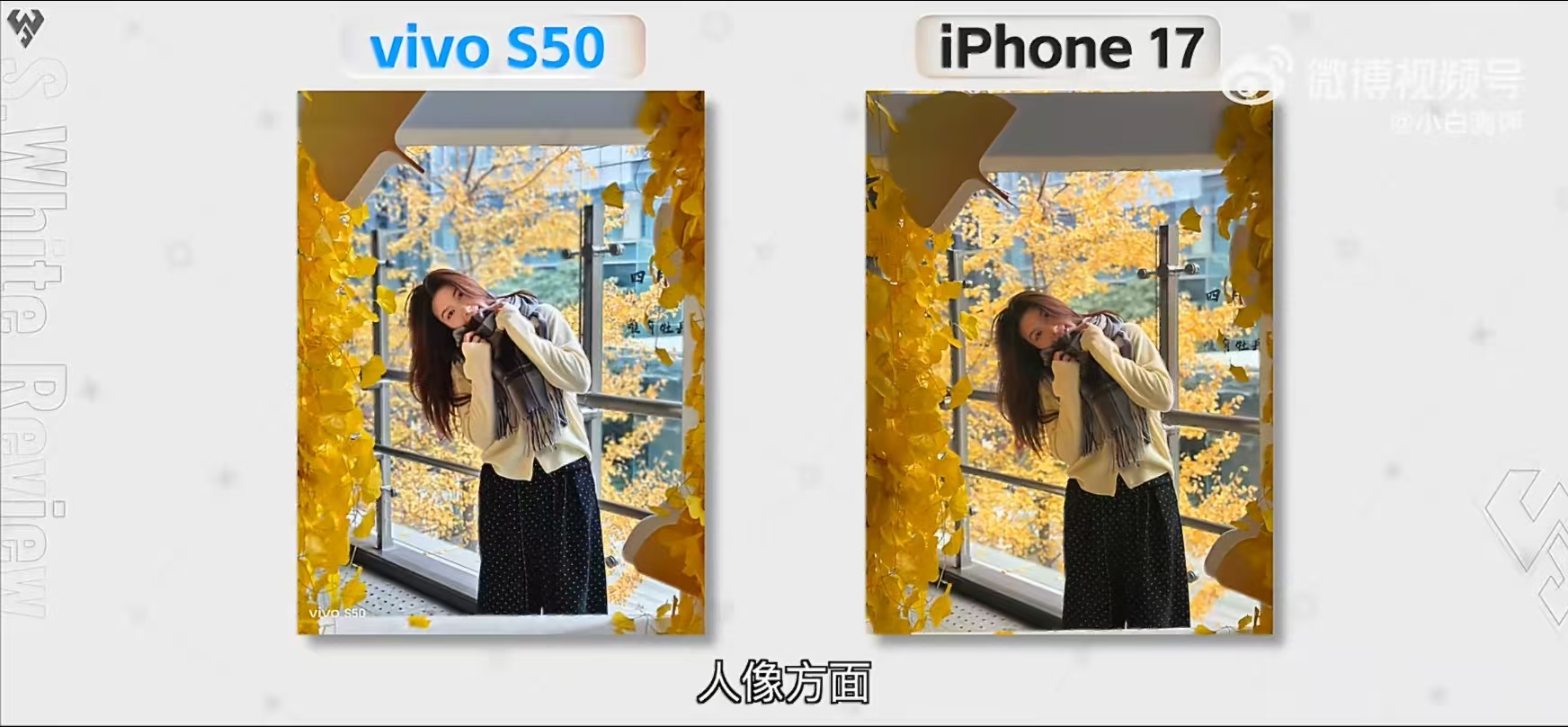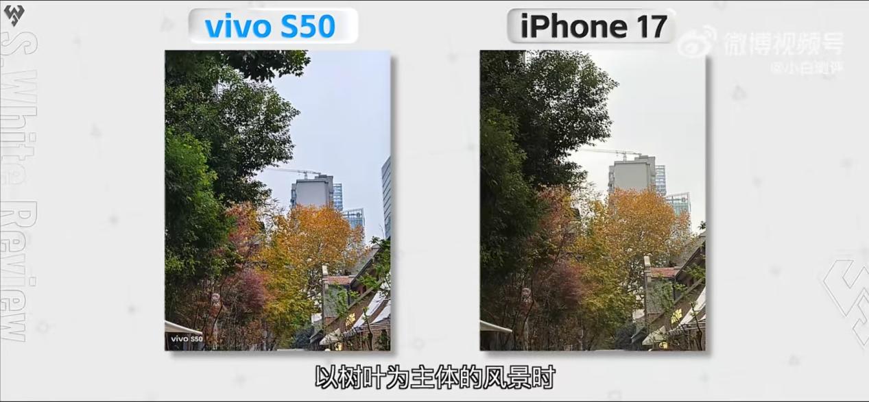 而相比较令人心醉的外观颜值,vivo S50系列的影像创新更是不容小觑之处。为满足用户在多场景下拍摄出更吸睛的影像作品,vivo S50系列全系标配潜望长焦,搭载了索尼IMX882传感器支持3倍光变、100倍数码变焦,感光面积比iPhone 17 Pro潜望镜头大1.7倍。下面是@小白测评发布的vivo S50系列上手体验的样张对比图: