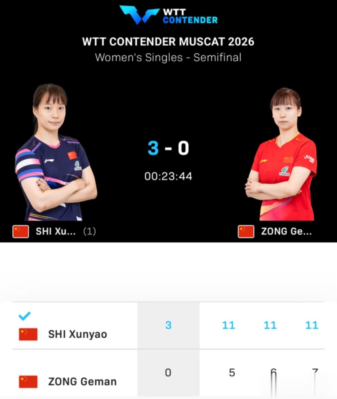 WTT常规挑战赛阿曼站的比赛也快结束了,刚刚结束的两场女单半决赛中,石洵瑶是3-0战胜队友纵歌曼,何卓佳3-1战胜了杜凯琹,中国女队提前包揽了女单冠亚军,这也是开年国乒女队拿到的首冠,希望接下来越来越好。