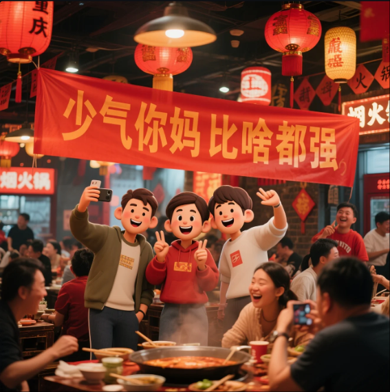 重庆某火锅店挂出"少气你妈比啥都强"横幅后,路过的张女士笑称"这比自家孩子嘴甜",隔壁超市立即跟进"妈妈想要的不多,少点外卖多唠嗑"的滚动字幕。北京高校更将标语玩出新高度:"今天浪费的每粒米,都是妈妈当年孕吐的苦!"有学生边吃饭边拍照发给母亲。这种用幽默消解代际冲突的方式,被心理学专家评价为"撒娇式沟通"。