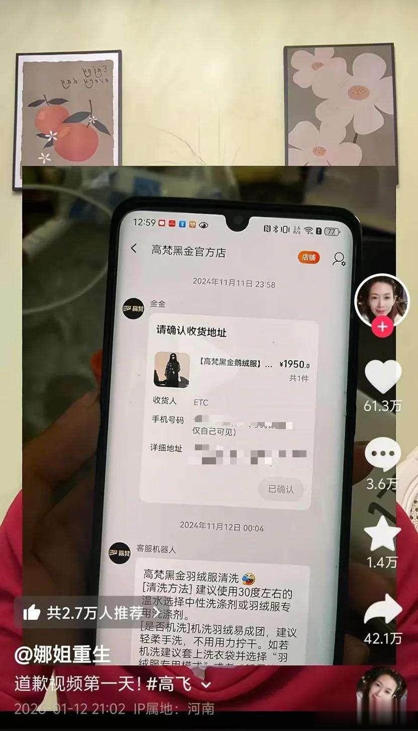 第一天发道歉视频,念完法院要求的内容,她话锋一转,掏出金饰付款单;第二天,晒出高某给韩某发的520红包截图,配文“真是浪漫啊”;第三天,又对着镜头叹气,说自己以前被家暴时,肋骨疼得睡不着觉……