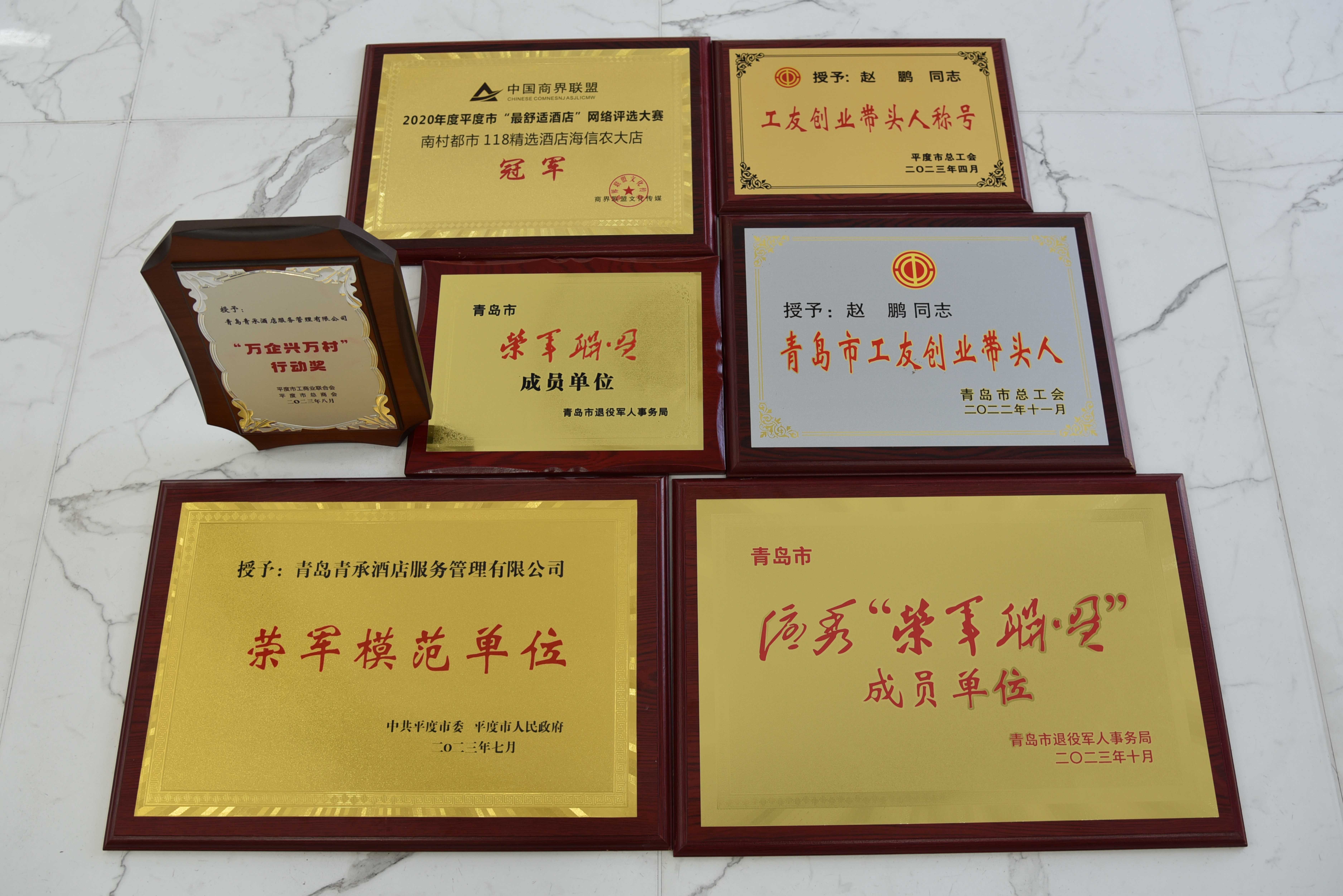 慈善公益之星、万企兴万村行动奖、青岛青年人才工作驿站、五星级党支部……2024年以来,青岛青承酒店服务管理有限公司和公司党支部新获得4项荣誉,公司总经理窦贤豪还荣获平度市劳动模范、诚信个人2项荣誉。在此之前,公司已有平度市“荣军模范单位”“放心消费示范店星级单位”等荣誉。个人已有青岛市团市委委员、青岛市工友创业带头人、平度市政协委员、青岛市“荣军先锋”、退役军人志愿服务“最美志愿者”、平度市文明市民、平度市五一劳动奖章、平度市青年榜样、平度市“为老”志愿服务活动优秀志愿者等10多项荣誉。