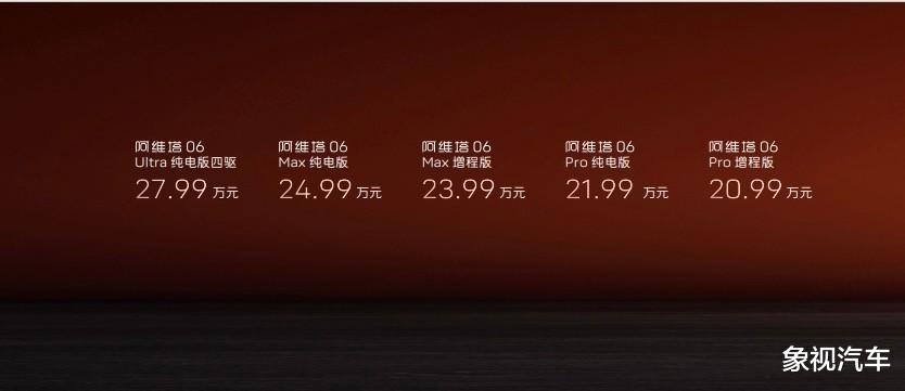 4月19日,定位“智美豪华运动轿车”的阿维塔06在重庆正式上市。新车推出了纯电和增程双动力,共5个车型版本,官方指导价为