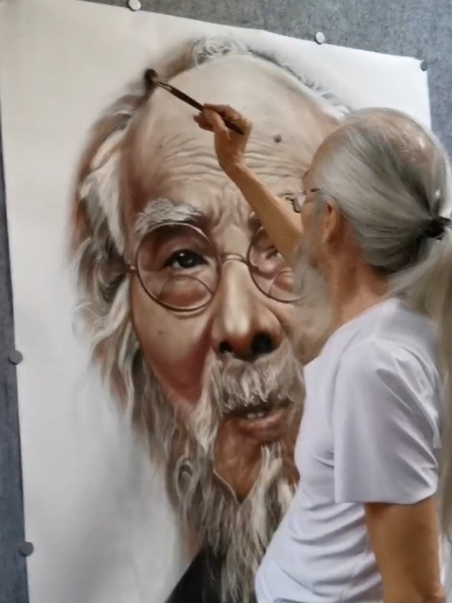 张松柏的笔下,有金石的铿锵,那是英雄的铮铮铁骨;有丝绸的灵动,那是智者的悲悯柔情。他沿着顾恺之、吴道子、徐悲鸿、蒋兆和等历代大师的足迹,却走出了一条全新的康庄大道。他不满足于形似,而是提炼人物在不同时代的 “神灵再现” 。无论是远观其势,还是近观其质,那超越摄影、超越油画的细腻质感,让观者无不屏息凝神,仿佛在与画中人隔世相望 。
