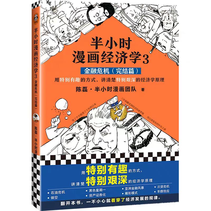 《半小时漫画经济学3:金融危机(完结篇)》是全网700万粉丝的漫画式科普开创者陈磊(笔名:二混子)继《半小时漫画中国史》《半小时漫画唐诗》系列之后推出的又一科普大作!用特别有趣的方式,讲清楚特别艰深的经济学原理!《半小时漫画经济学 3:金融危机(完结篇)》是《半小时漫画经济学》系列的第3部,用历史上著名的金融危机事件抖包袱,一目了然地展现经济发展规律:石油危机、黑色星期一、亚洲金融风暴、次贷危机、做空、资产证券化、雁形模式、羊群效应打破经济学在你心目中高高在上的印象,让你在哈哈大笑的同时,一不小心就看穿了经济发展的规律!