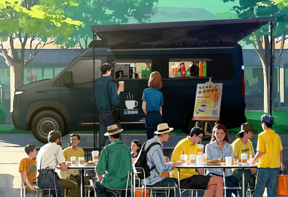 对于咖啡创业者来说,一辆能灵活穿梭城市角落的移动咖啡馆,既是梦想的载体,更是事业的延伸。先锋官V的超大空间成为移动吧台的理想基底,支持搭载咖啡机、微波炉、制冰机、大容量冰箱等专业设备,定制化水电系统让“咖啡馆”水电无忧。方正的货箱设计带来 更高的垂直内高,咖啡师可在车内自如操作,侧边拓展窗与折叠吧台组合,瞬间将车厢转化为开放式交互空间。百公里油耗6.77L的高效动力系统,让跨城区出摊成本可控。先锋官V用可商用化的改装方案,让创业梦想随车轮抵达每一个潜在客户身旁。