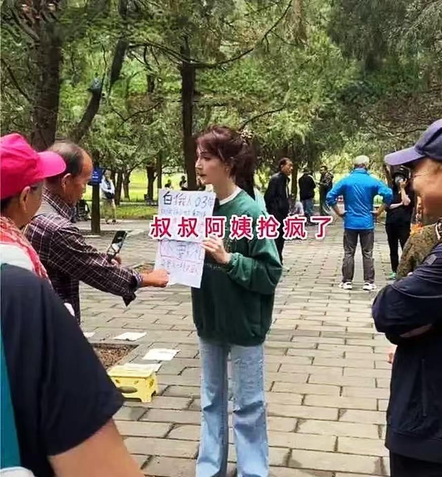 她手持一块牌子,上面写着“21岁,白俄罗斯,不要彩礼婚房,寻觅真爱”。