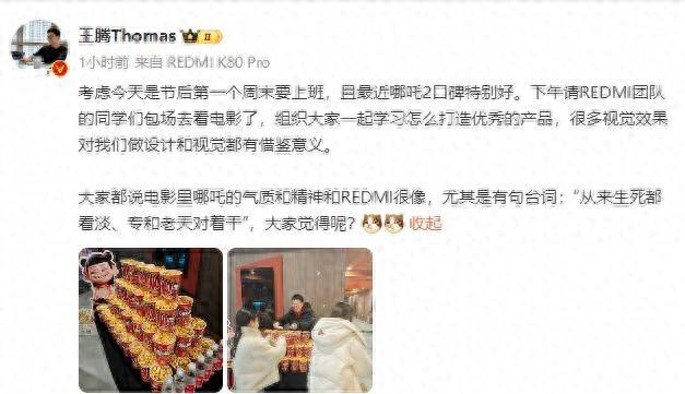 小米这帮人是真会玩,王腾带着团队去看《哪吒2》,这事儿让我想起他之前上班玩游戏的事情,搞得整个互联网圈都在讨论到底是摸鱼还是真工作,但公司氛围好像真的挺自由的。