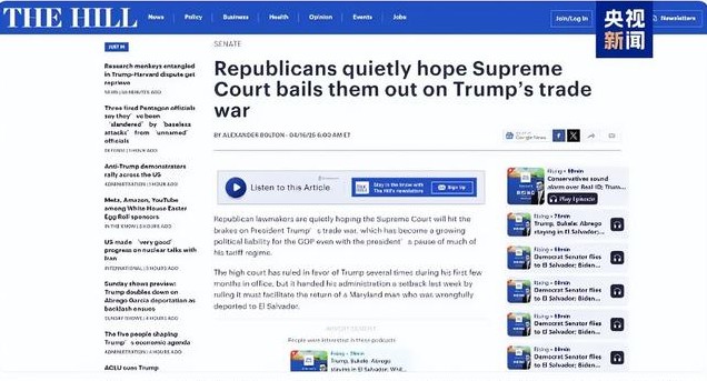美国共和党议员暗中希望美国最高法院出手叫停关税战,看来和特朗普同一条战线上的共和党人也都看不下去了。