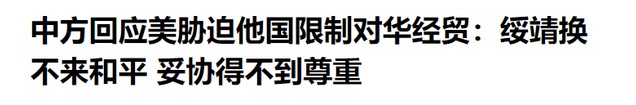 中方回应美胁迫他国限制对华经贸:绥靖换不来和平 妥协得不到尊重
