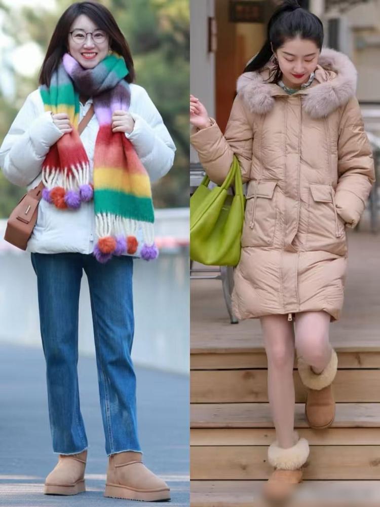 雪地靴选短筒的就行,好搭配还不臃肿。