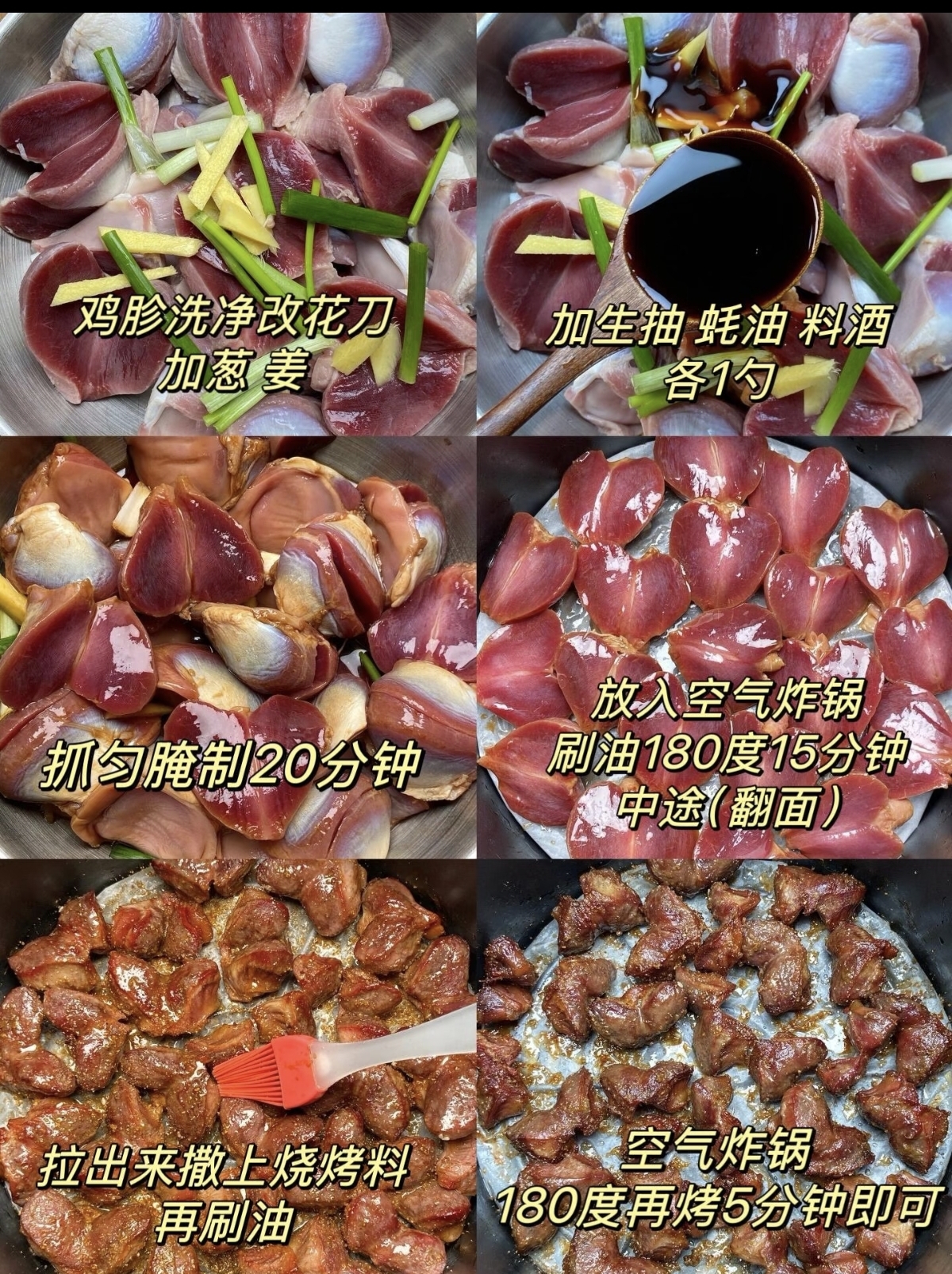 家里有空气炸锅的,千万别让它只用来烤薯条或鸡翅,今天必须给大家安利一道让人“香迷糊”的神仙小食——空气炸锅烤鸡胗。这道菜的神奇之处在于,无需复杂的烹饪技巧,也不用时刻守在灶台前,只需简单腌制,放进空气炸锅,就能收获外焦里嫩、劲道十足的美味。咬上一口,表皮焦香酥脆,内里鲜嫩多汁,越嚼越香,那浓郁的孜然和辣椒香气,瞬间就能征服你的味蕾,无论是作为深夜追剧的零嘴,还是周末小酌的下酒菜,都再合适不过。
