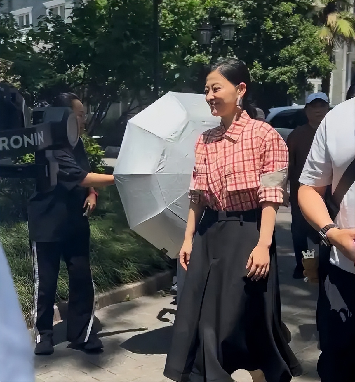 当天的梅婷身穿红色格子衬衫,下半身则是黑色直筒裙,这身装扮看起来很是简约大气。在看到路人跟她打招呼时,梅婷也是微笑着回应,心情看起来很不错。