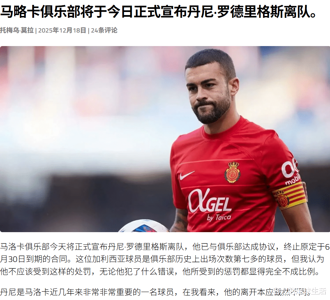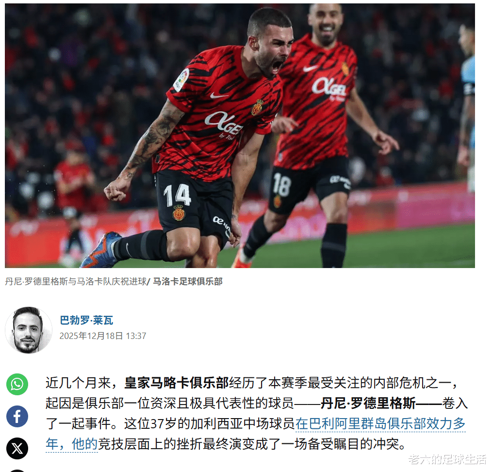 皇家马略卡这边最近出现了内部危机,为马略卡效力多年的老将同时也是球队的队长丹尼·罗德里格斯在自己的社媒上公开抱怨俱乐部,指责俱乐部缺乏管理能力、文化底蕴和对努力工作的尊重。