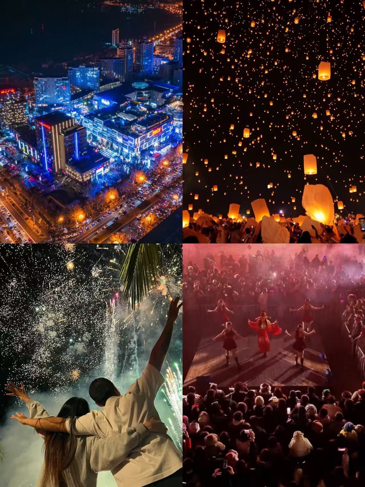 音乐是从晚上八点半开始的,有很多乐队,说唱歌手前来助阵,在零点倒计时的时候会有全员倒计时活动以及气球放飞,抽奖活动,到最后还会集体蹦极,简直嗨翻全场