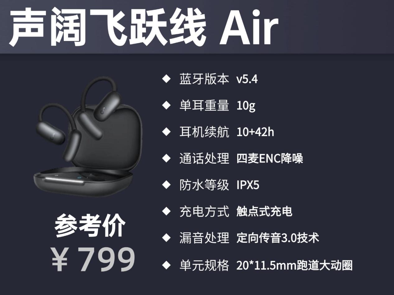 推荐理由:耳机很轻盈,久戴不会有压迫感。这款耳机佩戴挺舒服的,单只仅6.6g的重量,拿在手里轻得几乎没感觉,再搭配医疗级液态硅胶耳挂,上耳瞬间就能感受到那种无负担的舒适感,就算连续戴一整天,耳朵也不会有丝毫压迫感。它支持一拖二功能,能同时配对两台设备,日常切换使用特别省心。不过有一说一,它的音质表现比较中规中矩,和同价位机型比起来没什么优势,整体性价比不算太高。