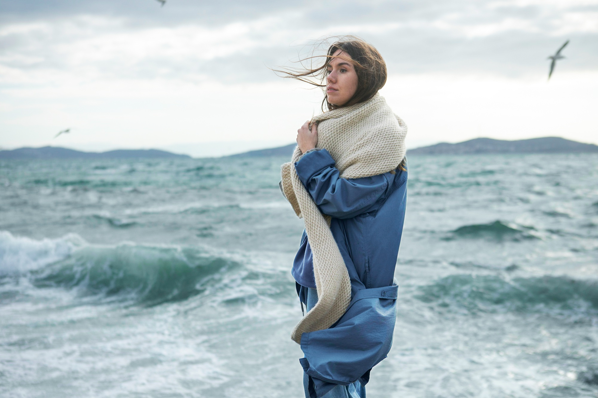 冬季的海边自带清冷高级的质感,想要拍出耐看的照片,关键在于利用好季节的独特氛围,并处理好人物与环境的互动。