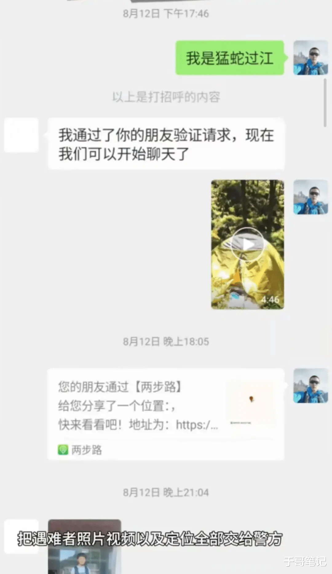 最终,博主选择了报警。可这个决定并不简单。他独自一人穿越着满是荆棘的荒野,拖着疲惫的身体,走了几公里,终于找到了信号良好的地方,可以拨打电话。这一路的艰辛,不仅是对他身体的考验,更是他内心坚定与脆弱的博弈。在拨通报警电话的那一刻,猛蛇过江的心情复杂而难言,既有责任感的痛苦,又有对未知命运的战栗。