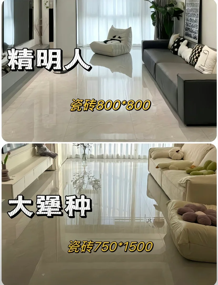 最开始装修的时候,很多人都追求大气美观,觉得大尺寸的瓷砖能让空间显得更加开阔,于是便不假思索的就选了大尺寸的瓷砖。