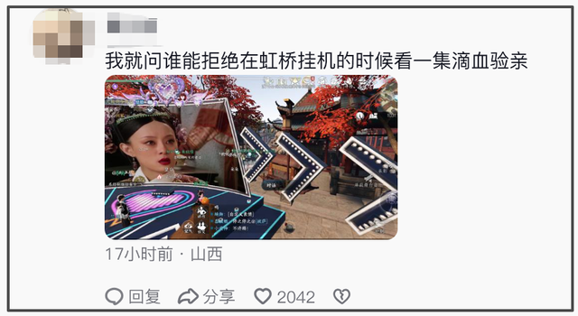玩家们的反应更是两极反转,一边对着屏幕吐槽:“逆水寒你到底在拿我的内存储存什么?”一边又诚实地拉上结义兄弟占座追剧:“谁懂啊!和结义一起在大宋江湖看滴血验亲,这体验根本拒绝不了。”