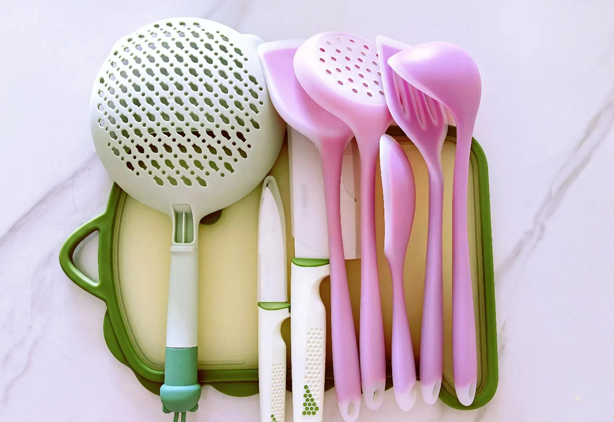 最常用的工具包括硅胶软勺、咬咬乐、专属的水果蔬菜刀和小菜板等。