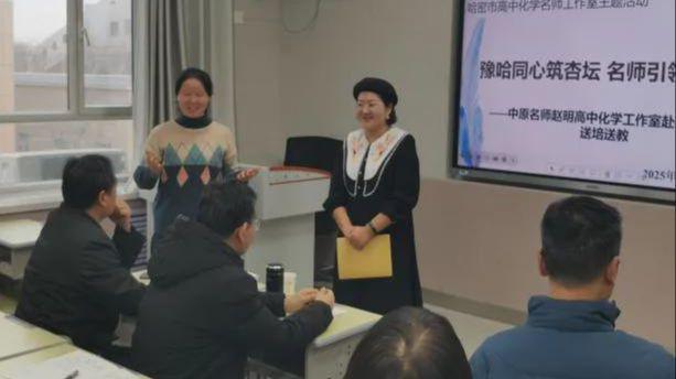 日前,为响应河南省教育厅“中原名师‘建站结对’援疆”政策号召,信阳市高中化学学科中原名师赵明带领7位名师,怀揣“各美其美、互相照亮”的教研初心抵达新疆哈密,开启为期4天的“组团式”援教之旅,内容涵盖了示范教学、专题报告、浸入研讨等,精准对接边疆地区的教研需求。