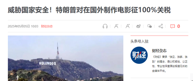 2025年5月4日,美国前总统特朗普在社交媒体Truth Social上激情开麦,宣布对“所有外国制作的电影”征收100%关税,理由冠冕堂皇:“保护美国电影业不被外国抢走!”