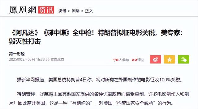 特朗普的关税“回旋镖”,终成美国软实力葬礼美国电影曾是全球文化输出的“核武器”,从《阿凡达》到漫威宇宙,哪个国家的电影爱好者没被“美式英雄观”惊艳过?