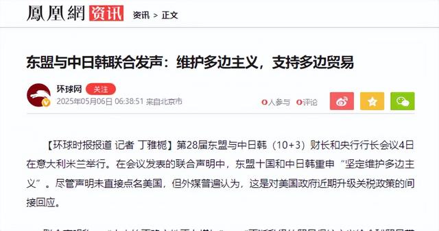 就在特朗普挥舞关税大棒的同一天,东盟10国与中日韩财长在意大利米兰开了一场“团结大会”,联合声明直指美国:“某些国家的单边加税扰乱全球经济!”