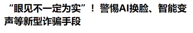 参考信源:大众日报 2024-12-13 “眼见不一定为实”!警惕AI换脸、智能变声等新型诈骗手段