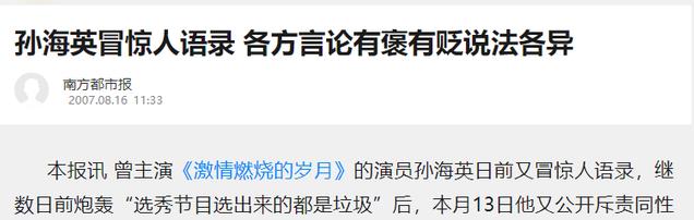 当年二人的世纪大战也让很多人第一次关注孙海英这个老戏骨的私德,细扒之下才发现,他的许多言论都很奇葩。