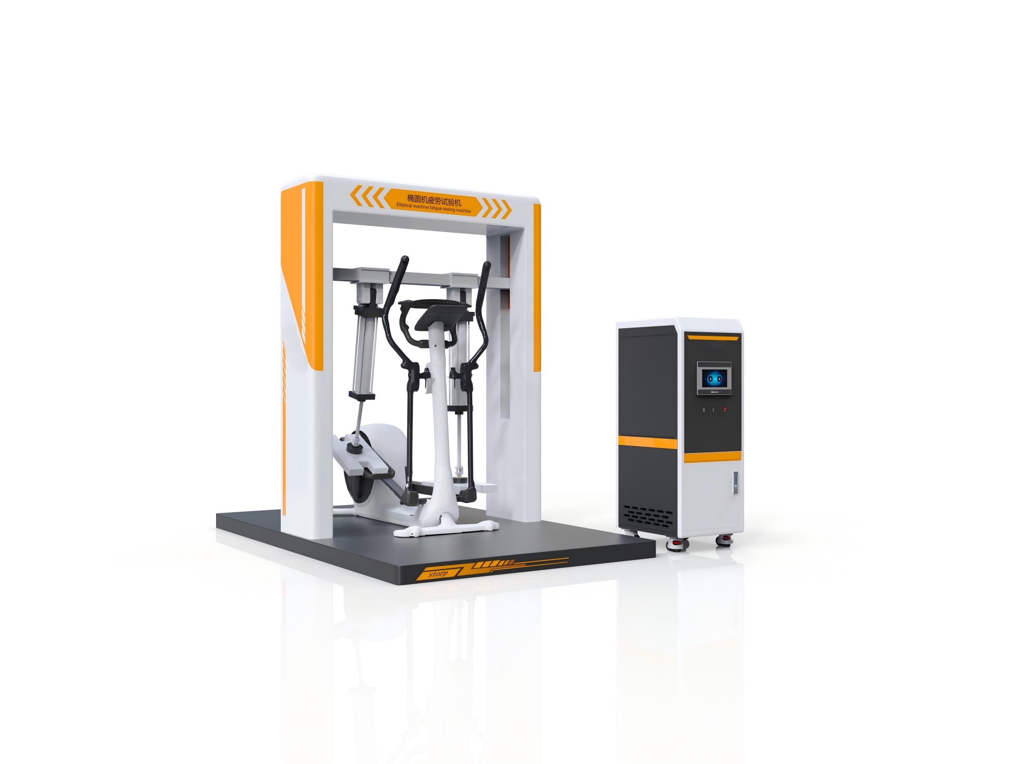 椭圆机疲劳试验机是用于模拟用户长期使用工况,对椭圆机踏板、曲柄、轨道、传动系统等关键部件施加循环负载与往复动作,以评估其机械耐久、结构强度及安全可靠性的专用检测设备,核心用于出厂质检、型式试验与研发验证。