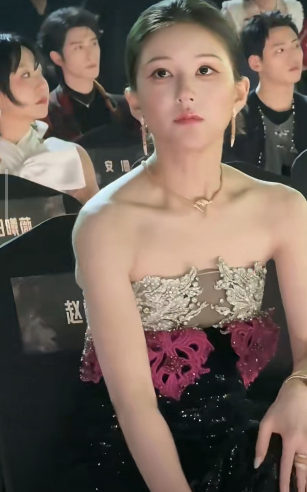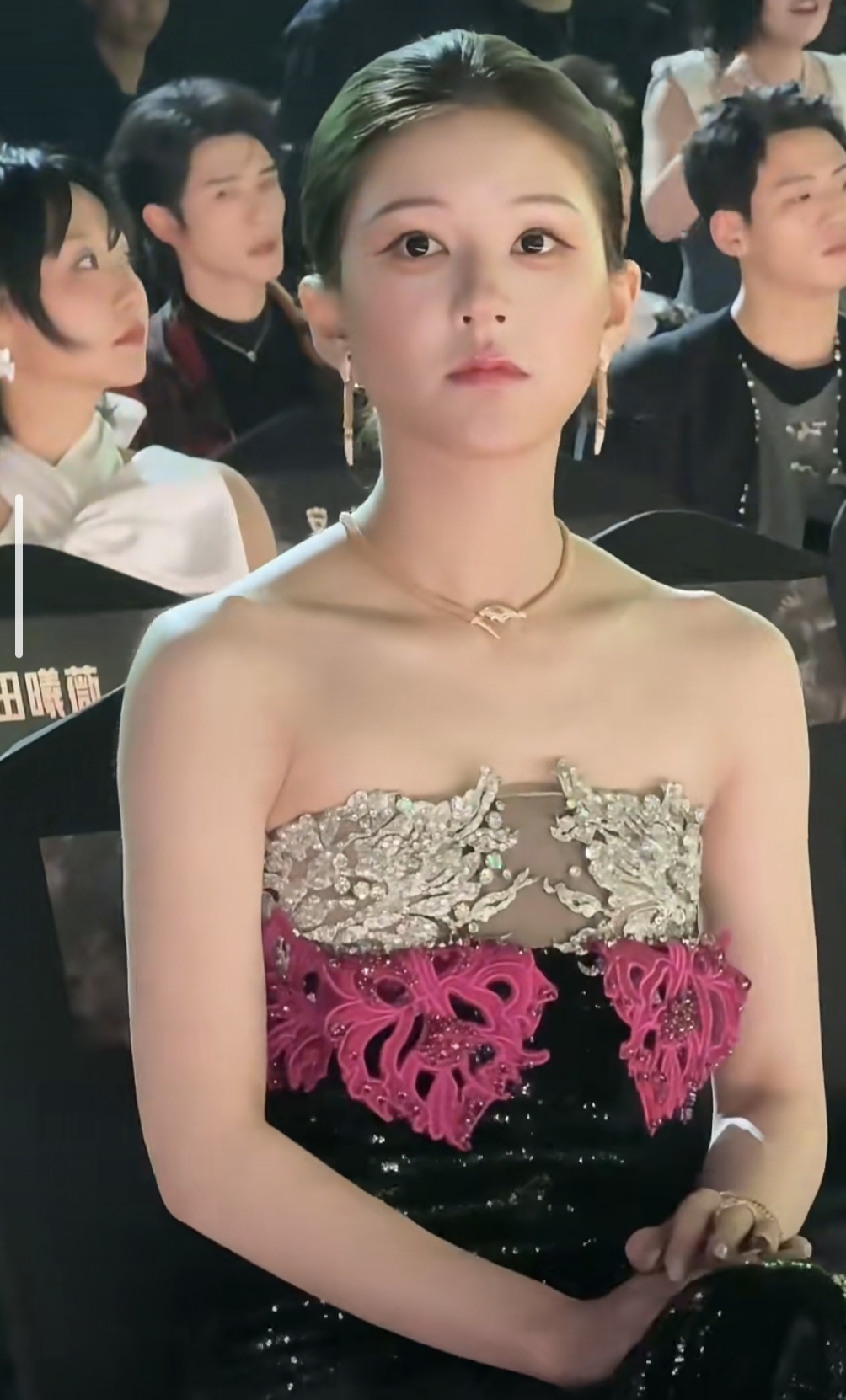 内场座位更是直接把“顶配待遇”焊在身上——第一排正中央的黄金C位,左边刘宇宁右边檀健次,妥妥的“流量+实力”双护法配置,跟白鹿、孟子义等95花同框却稳站C位核心区。镜头一扫全场,她的位置堪称“上帝视角专属座”,连生图状态都好到发光,皮肤紧致笑容甜,难怪网友直呼“这是把‘女主光环’戴在了身上”。