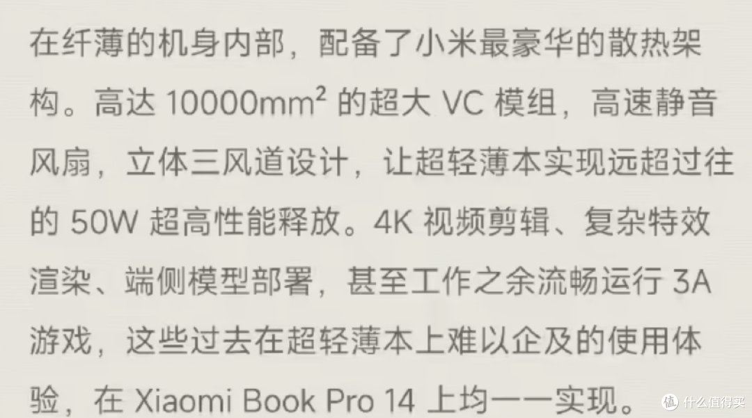 在机身内部,新品配备了小米最豪华的散热架构。高达 10000mm² 的超大 VC 模组,高速静音风扇,立体三风道设计,实现 50W 超高性能释放。4K 视频剪辑、复杂特效渲染、端侧模型部署,此外还能流畅运行3A 游戏。
