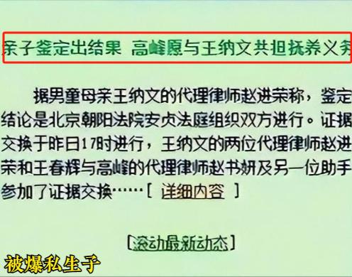 大众网:私生子事件又起波澜 王纳文再告高峰索要生活费【2006-10-01】