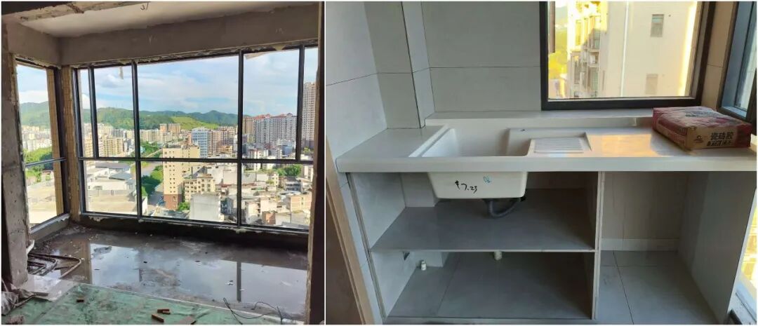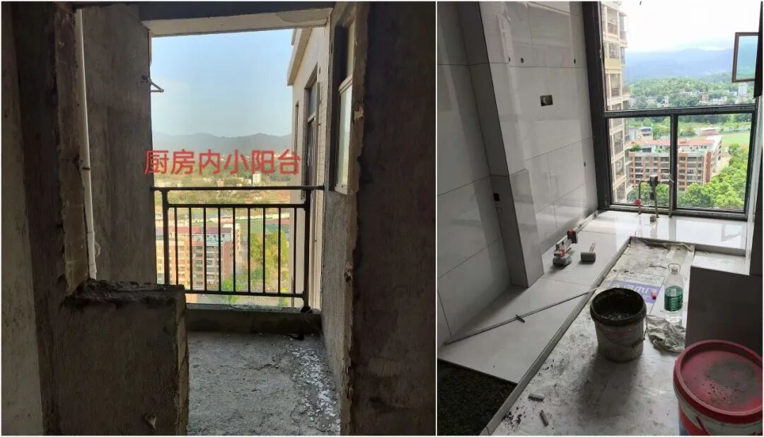 包括卫生间与阳台的洗手盆,都是现场砌的。
