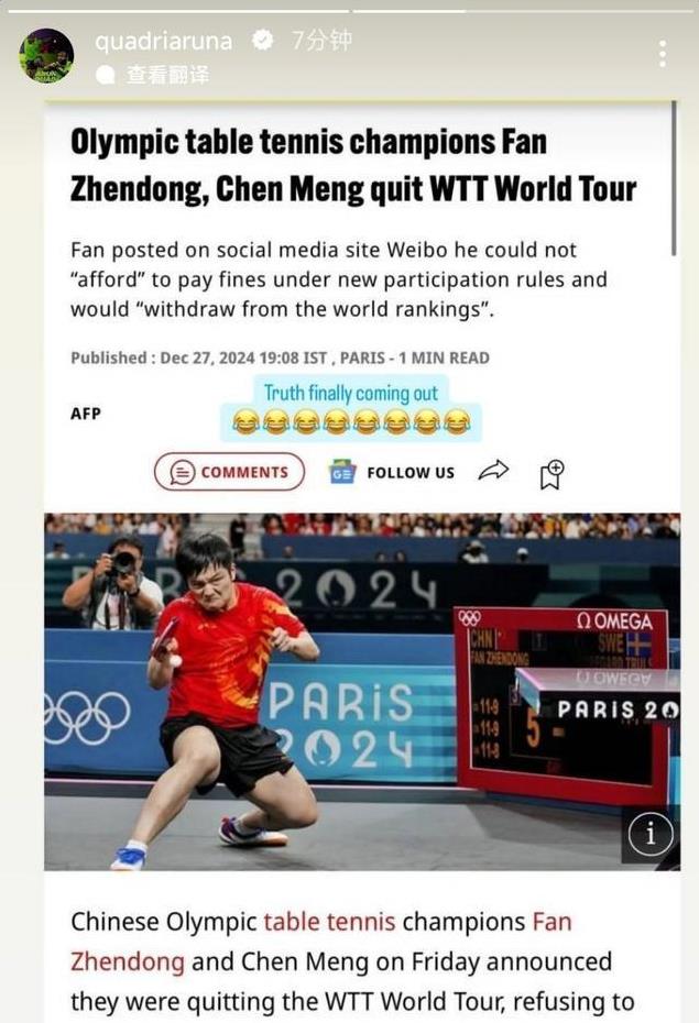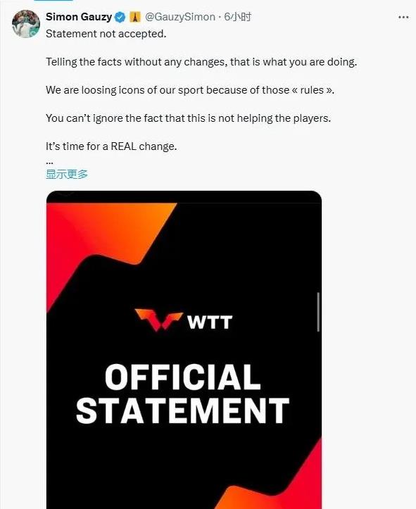 更重要的是,乒乓球的整体形象也受到了影响。本来乒乓球在国际上观赏性就不高,改革是个千载难逢的机会,却因为WTT的种种操作,彻底把选手、观众和外界的耐心耗光。勒布伦兄弟、阿鲁纳的抗议,已经说明问题不只是“选手情绪化”,而是这个体系真的出了大问题。