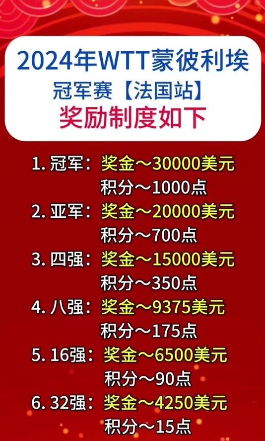 可WTT这几年搞的这一套,说白了就是“画饼充饥”。比赛奖金少得可怜,大满贯冠军奖金顶天10万美元,这跟动辄几百万美元奖金的网球比,连零头都算不上。