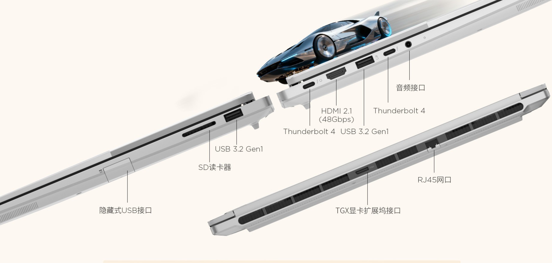 对于经常使用笔记本连接各类外接设备的打工人来说,ThinkBook 16+ 2026提供了大满贯接口,RJ45网口、标准SD读卡器、HDMI 2.1视频端口等一应俱全。而且它还提供了TGX显卡扩展坞接口,通过外接显卡可以进一步提升整体性能与泛用性。
