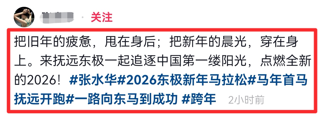 值得关注的是,因为张水华的话题性,除了她进入赛道试跑备受关注外,抚远文旅也在密集宣传张水华在当地的点点滴滴,而且效果似乎很好,此前很多人并不知道抚远,但因为张水华来参赛很多人都知道了!