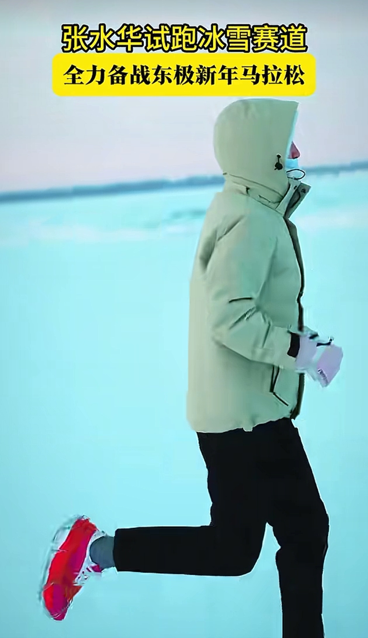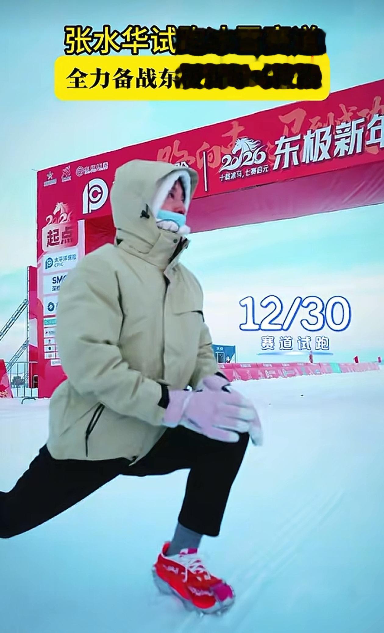 12月30日,张水华正式进入赛道试跑,从现场的画面来看,冰天雪地,这对于跑全马的人来说无疑是巨大的挑战,张水华仔赛道上裹得严严实实,戴着口罩,只留了眼睛在外面。