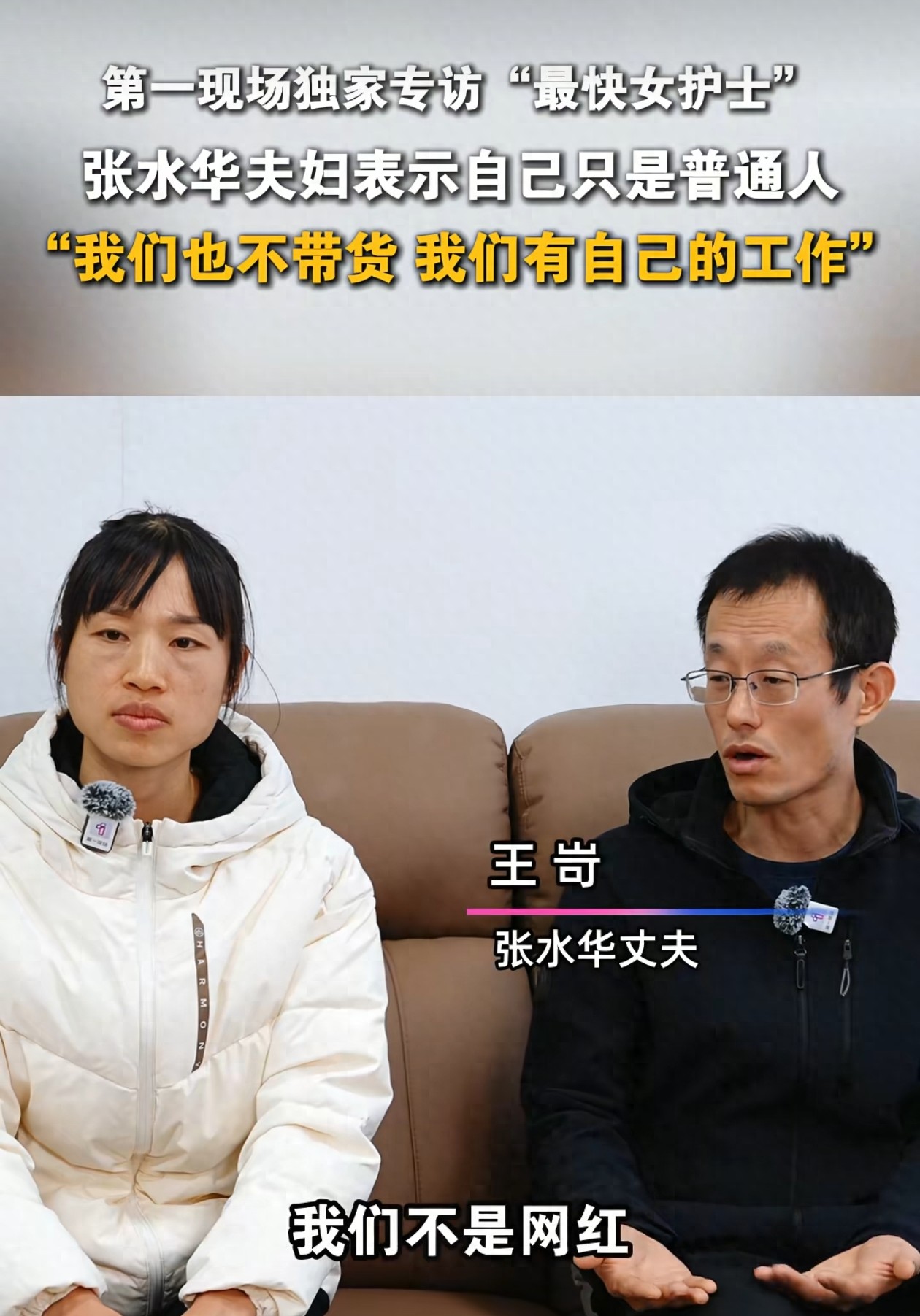 最快女护士张水华终究还是未放弃所爱,她的丈夫王岢面对镜头曾经公开说过,他们不是网红,都有自己的本职工作,未来也不会带货,妻子坚持跑马拉松只是因为热爱。