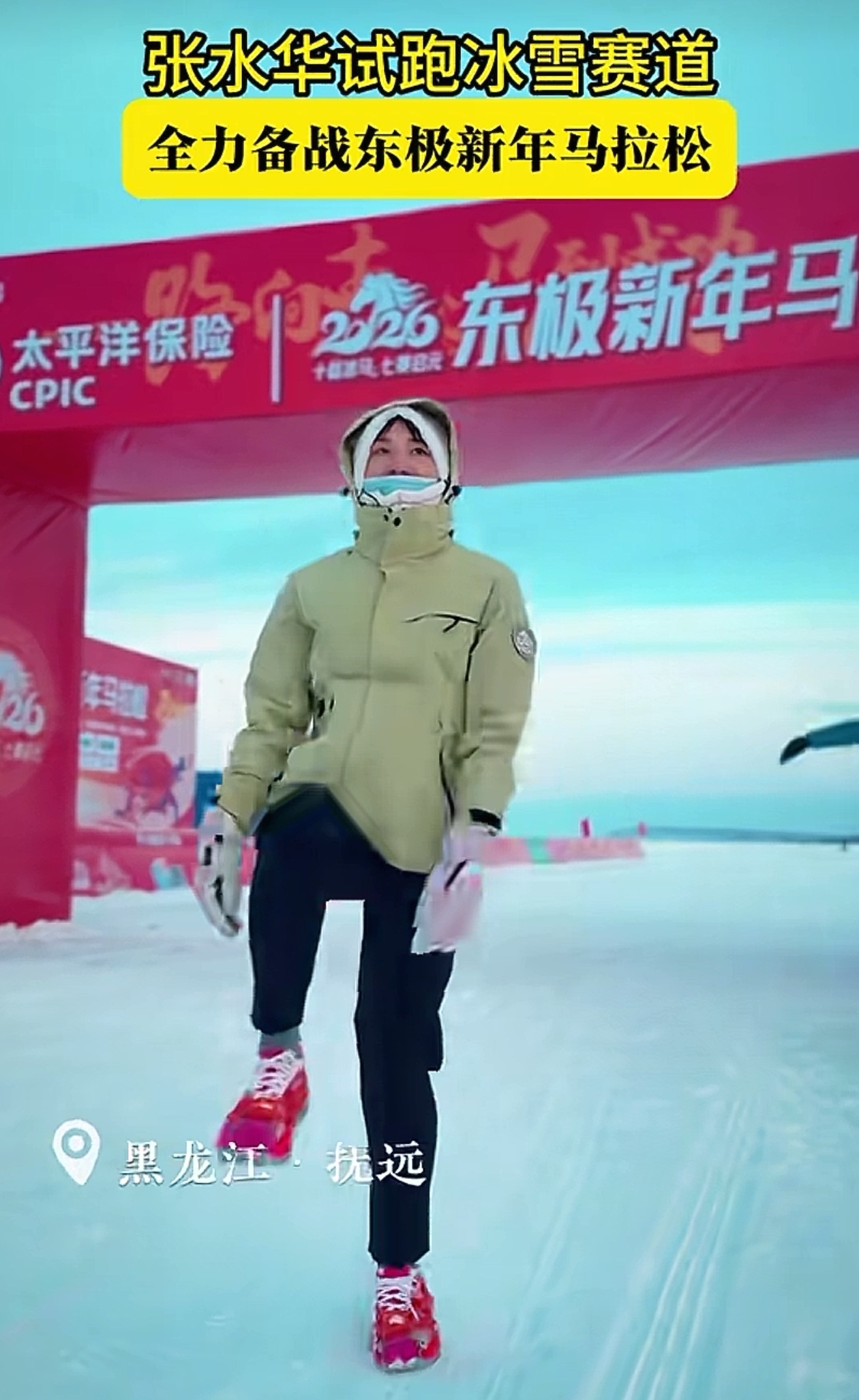 12月29日,张水华宣布将参加2026年元旦在黑龙江抚远举行的东极新年马拉松,并且她和丈夫于12月28日就已经抵达黑龙江,领取了参赛物料,也受到了举办方的欢迎。