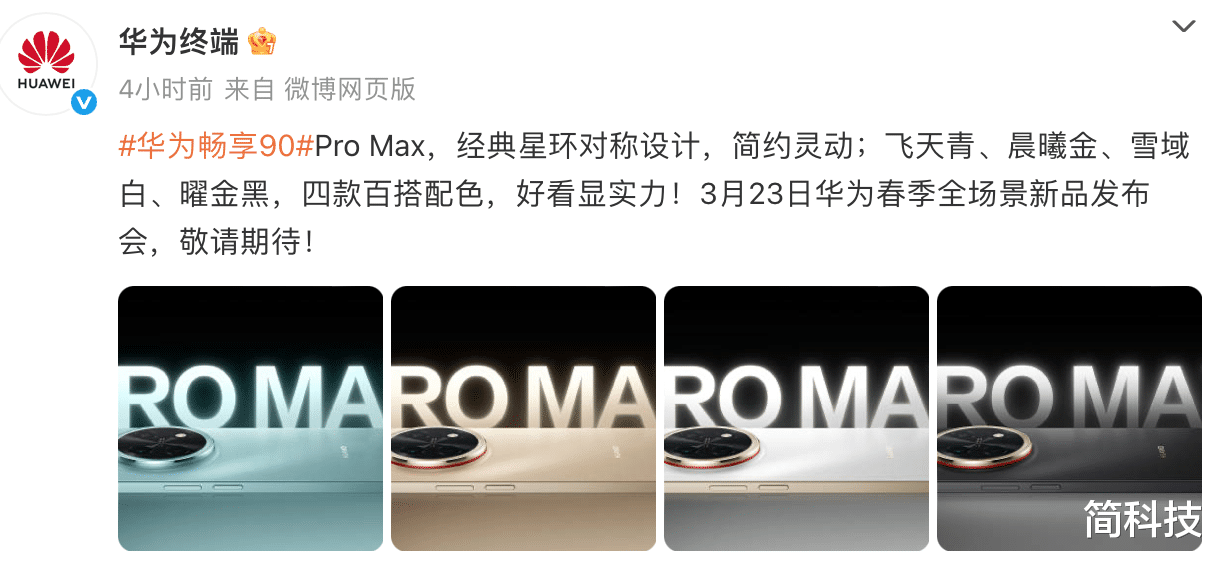 最近华为官方正式宣布,华为春季全场景新品发布会将于 3 月 23 日下午举办,届时华为将会带来华为畅享 90 系列等多款新品。