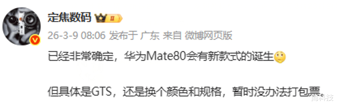 不过此前有博主爆料称,在这次发布会上,华为 Mate 80 系列还会有一款神秘机型,至于这款机型是更高性能的“GTS”版本,又或者只是新增配色或新规格,这个目前还未知。