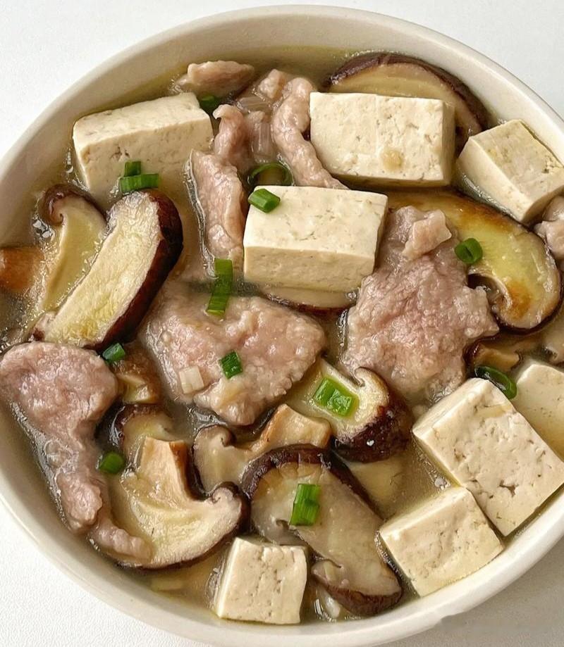 食材:嫩豆腐 1 块(约 300g)、猪肉末 150g、干香菇 5-6 朵、葱花少许、生抽 2 勺、蚝油 1 勺、淀粉 1 勺、盐少许、姜片 1 片(去腥用)