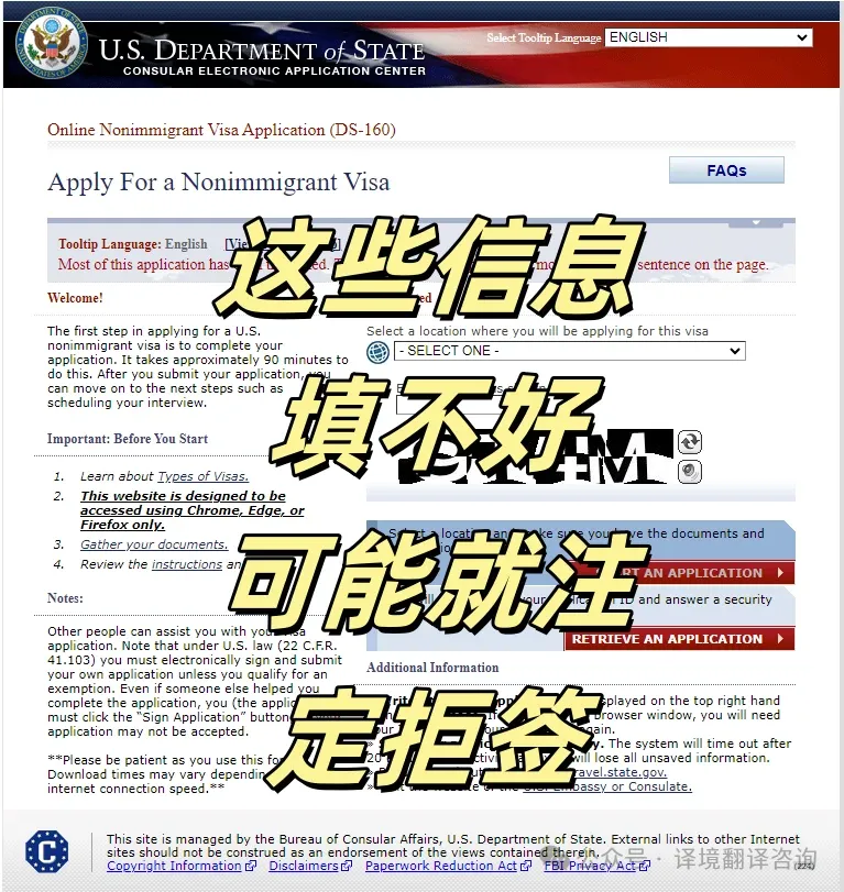 第一步:重新创建新的DS-160表格(重点:如实填写,避免再次出错)